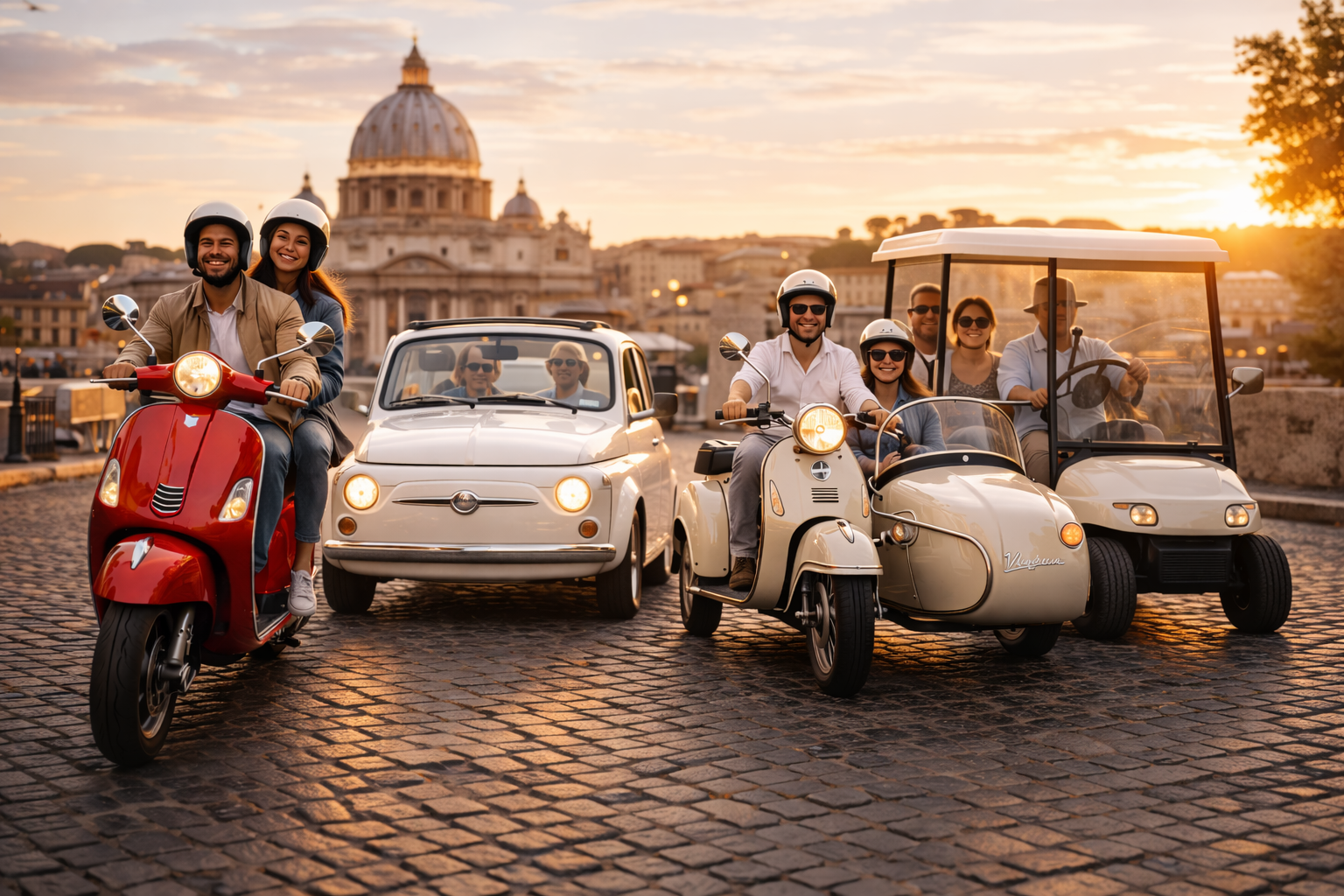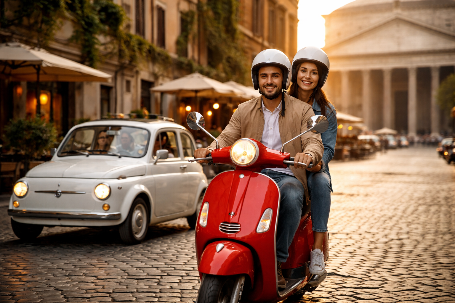 If you want to feel Rome (not just see it), a Vespa is one of the best ways — because the city is built in layers: viewpoints, neighborhoods, river crossings, long avenues, tight lanes, and sudden panoramic opens.
